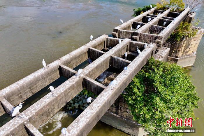 12月8日,祸修祸州,黑鹭歇息断桥成1景,吸收公众前去旁观。(无人机像片)中新社记者 王东亮 摄